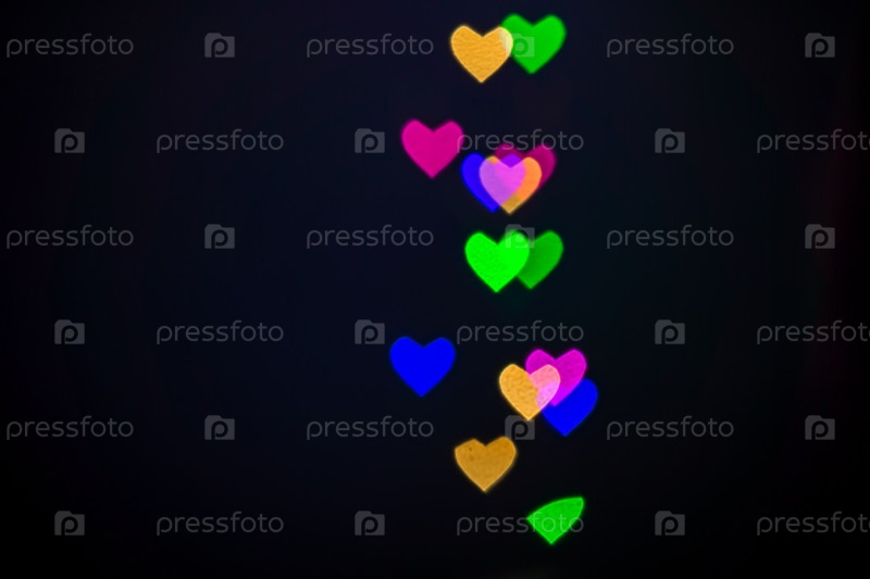 Сердечный фон боке, концепция Дня любви и Валентина. Свет разноцветных блестящих сердец