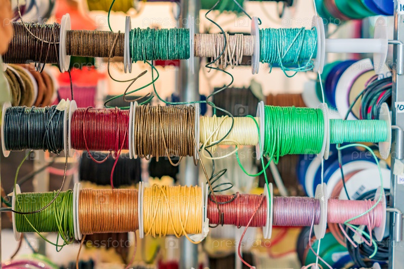 Набор катушек с кожаной веревкой разных цветов для шитья или крафта на рынке
