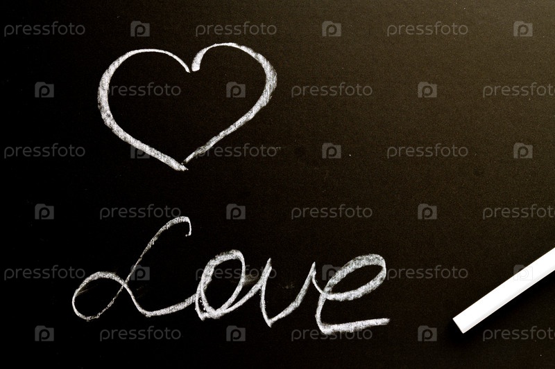 Меловая доска со словом любовь и сердце. Текстура гранж-фона