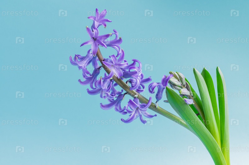 Закройте цветок цветущего голубого гиацинта на синем фоне