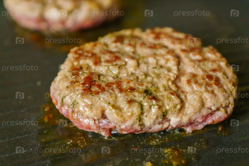 Приготовление мясных бургеров со специями на гриле дома. Крупным планом, выборочный фокус