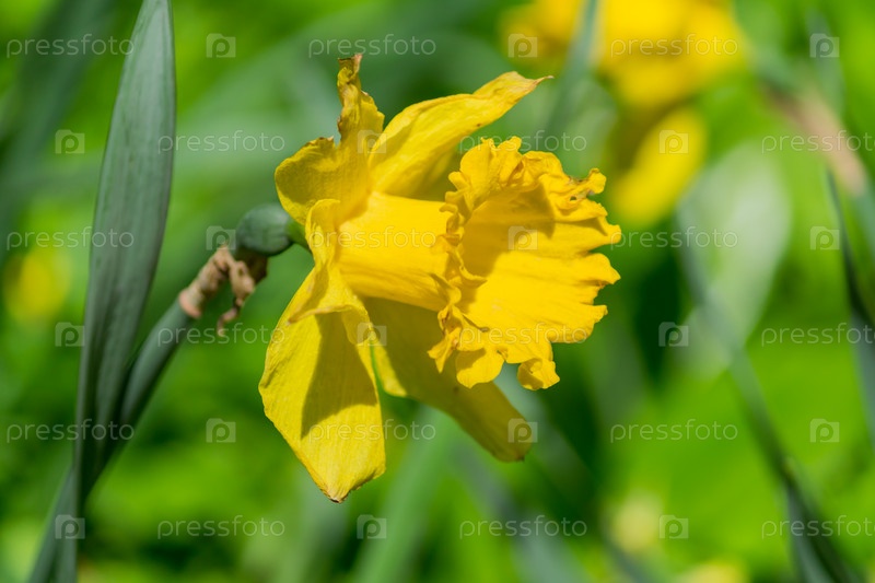 Нежные желтые цветущие цветы нарцисса в весеннем саду, цветочный фон