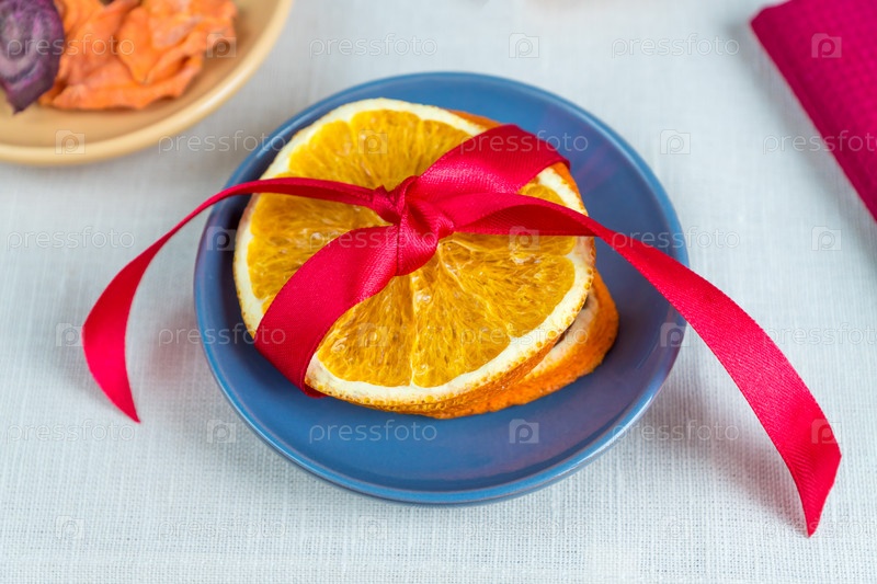 Здоровое питание органическое питание. Нарезанные и сушеные апельсины, морковь и свекла на текстильном фоне