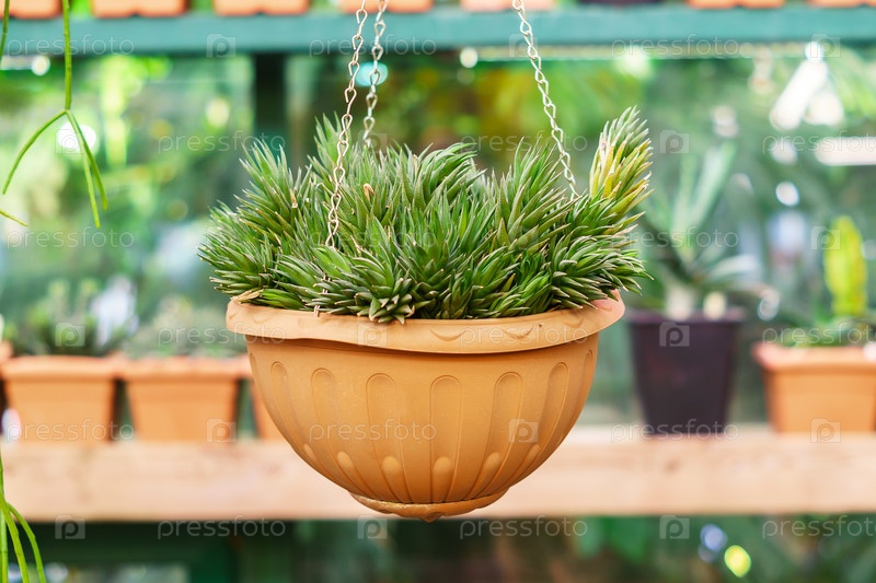 Растение алоэ в горшке ручной работы в теплице