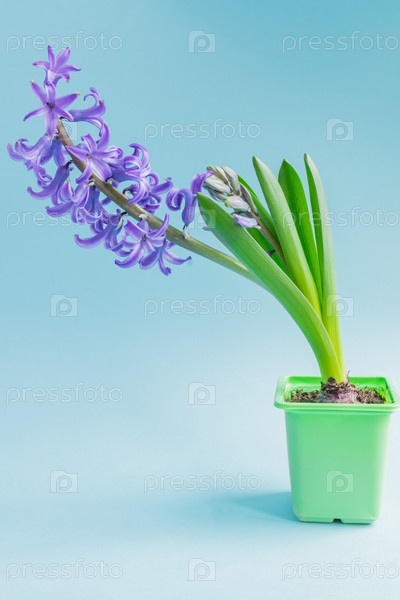 Закройте цветок цветущего голубого гиацинта на синем фоне