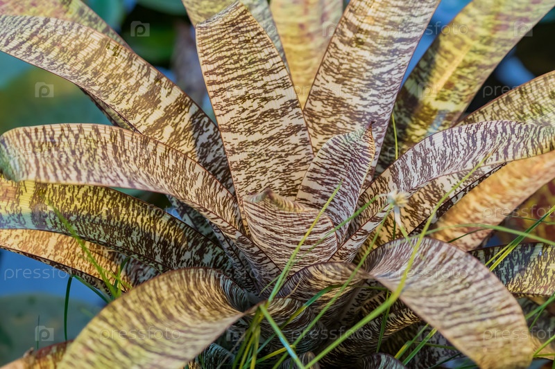 Крупный план тропического цветка бромелии. экзотическое растение в саду