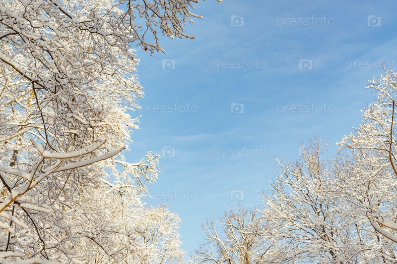 Морозный зимний пейзаж. Деревья в снегу
