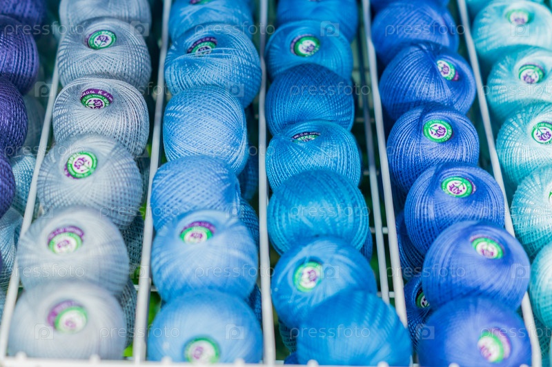Москва, Россия - 14 февраля 2019 г.: Стенд пряжи для вязания в магазине. Красочный текстурный фон