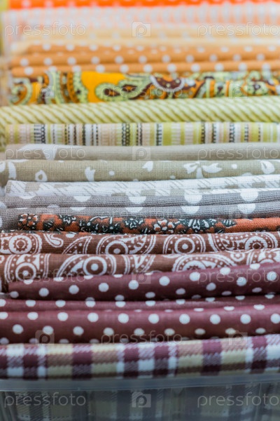 Ассортимент натуральных тканей и текстиля. Материалы для творчества и скрапбукинга своими руками. Концепция швейной промышленности