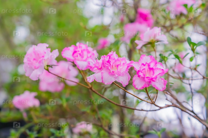 Розовая цветущая азалия в саду. Естественный фон