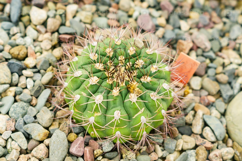Крупный план круглого кактуса в форме шара в ботаническом саду