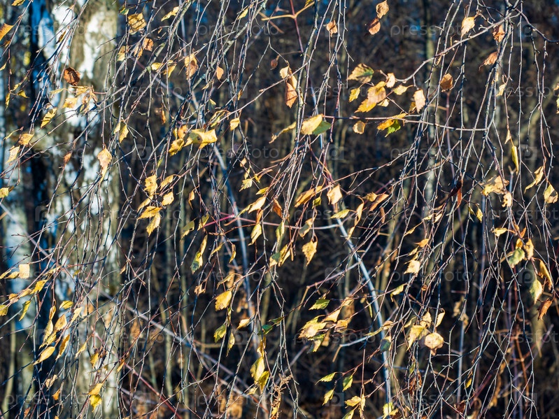 Осенняя природа. Тонкие ветки березы с пожелтевшей листвой