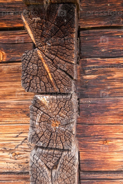 Угол старого дома собран из обработанного бруса. текстура дерева
