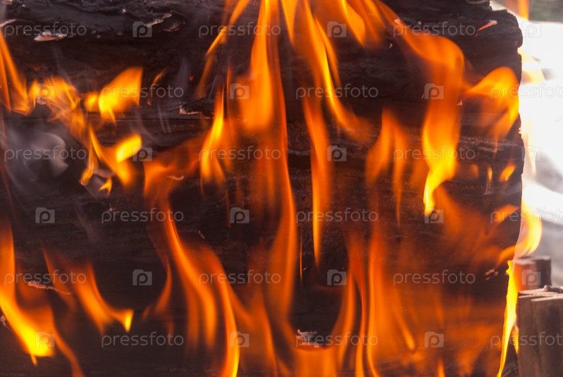 Текстура огня на фоне горящих бревен