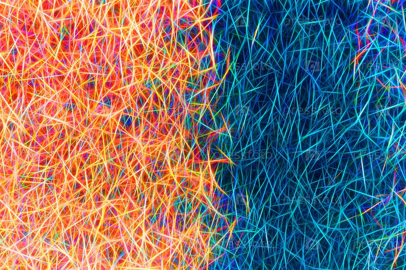 Абстрактный разнообразный двухцветный абстрактный фон, яркие разноцветные линии на темном фоне