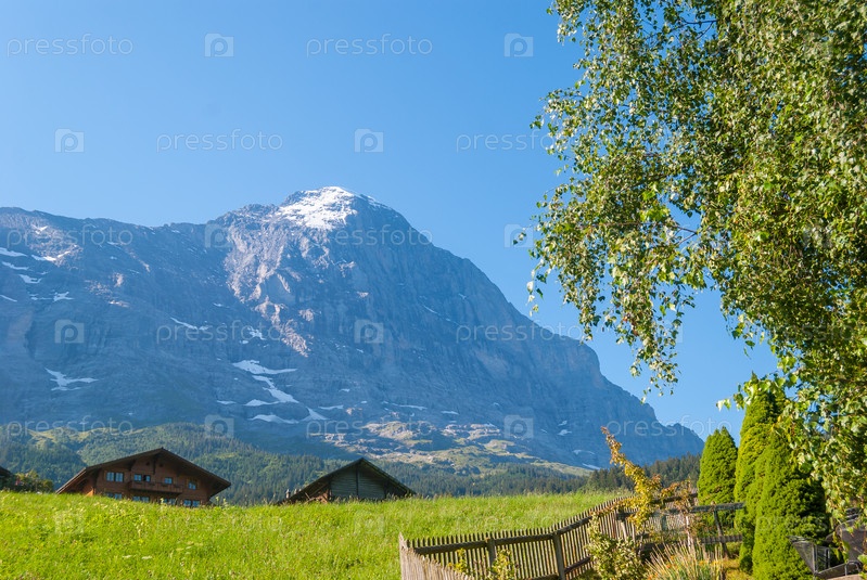 Прекрасный вид на город Гриндельвальд на фоне пика Эйгер. Гриндельвальд, Швейцария, Европа