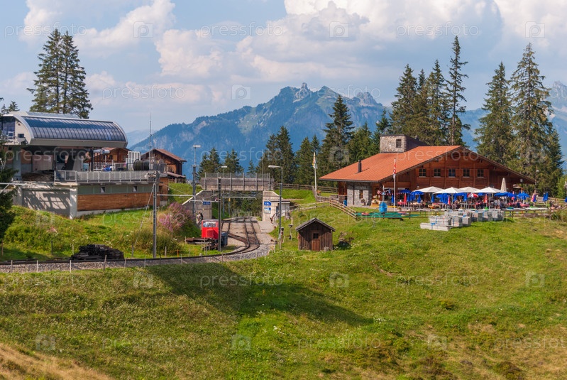 Железная дорога в живописных горах Швейцарских Альп