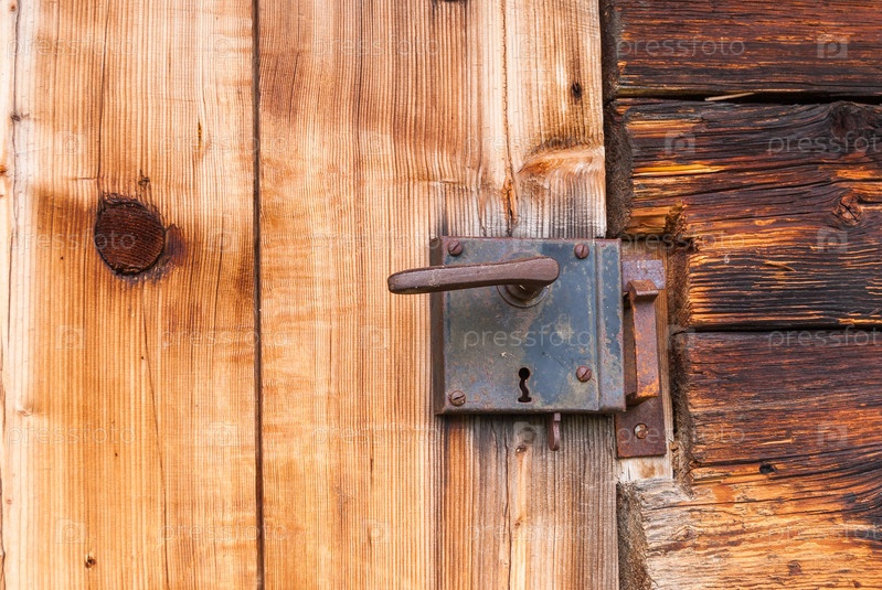 Старый замок на старой деревянной двери швейцарского шале