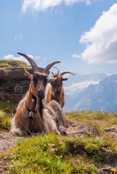Козел на вершине крутого скалистого склона. Гриндельвальд, Швейцария