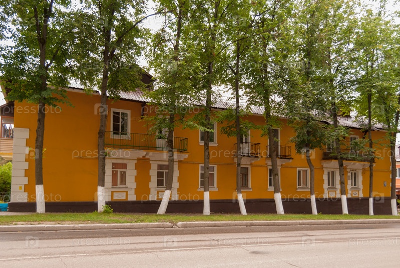 Город Суворов, Тульская область, Россия. Аккуратный двухэтажный дом в ярком цвету