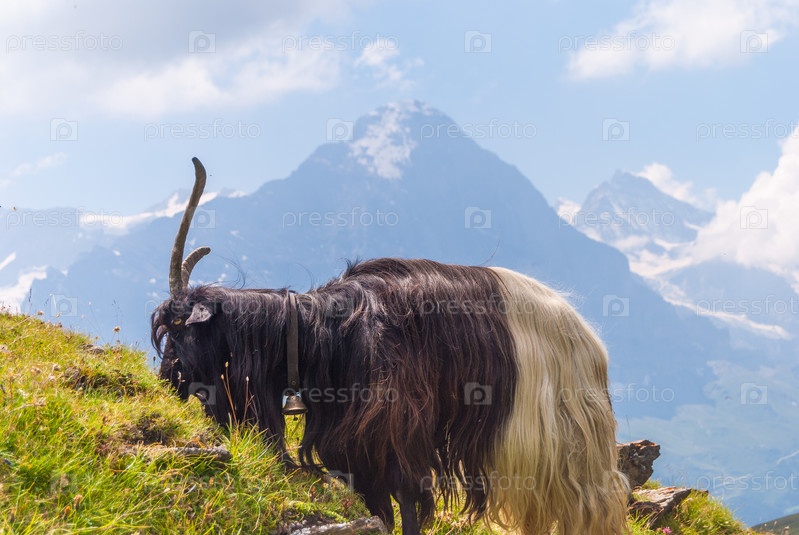 Козел на вершине крутого скалистого склона. Гриндельвальд, Швейцария