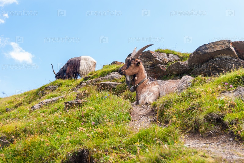 Стадо коз на крутом скалистом склоне. Гриндельвальд, Швейцария