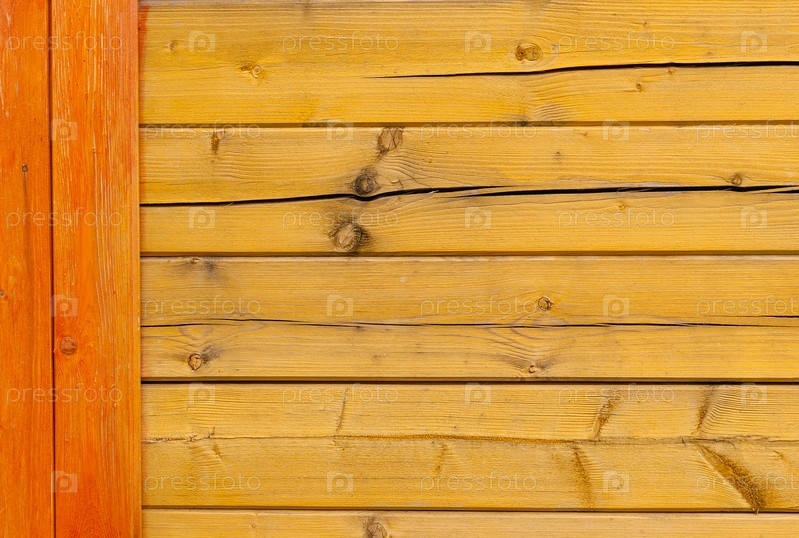 Не новая деревянная желто-оранжевая стена с горизонтальными балками