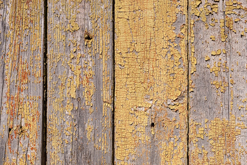Вертикальные деревянные стены, на которых видны остатки старой потертой зеленой краски