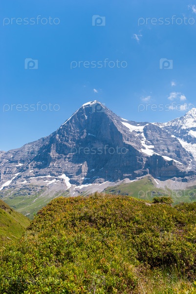 Альпийская панорама северной стены пика Эйгер, Гриндельвальд, Бернские Альпы, Швейцария, Европа
