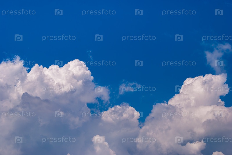 Белые кучево-дождевые облака на фоне голубого неба