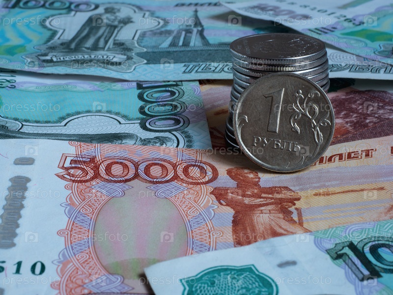Монетки российского рубля находятся на различных банкнотах