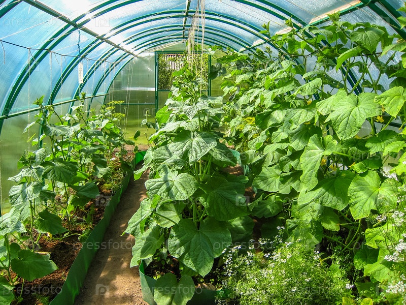 В теплице высажено несколько грядок огурцов. Тула, Россия