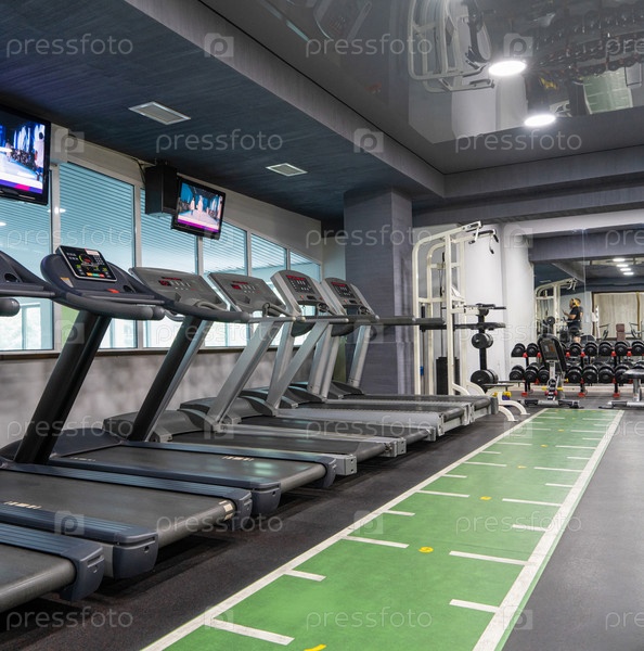 Ряд беговых дорожек в спортивном комплексе