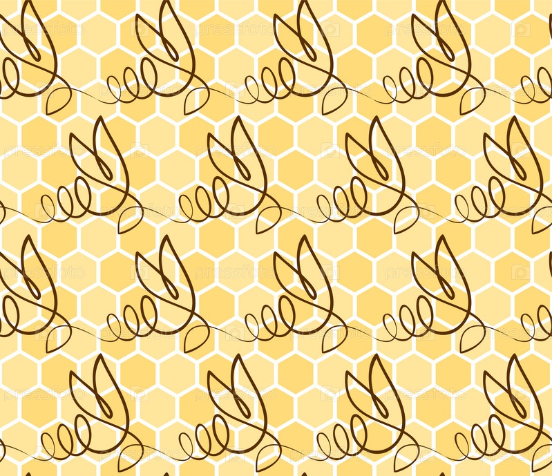 Бесшовный фон с пчелами и сотами