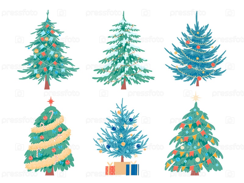 Украшенная елка. Вектор, изолированные на белом фоне