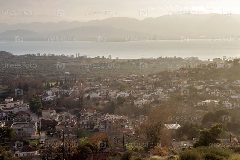 Вид с высоты на деревню Ахинос (муниципалитет Стилида, во Фтиотиде, Центральная Греция)