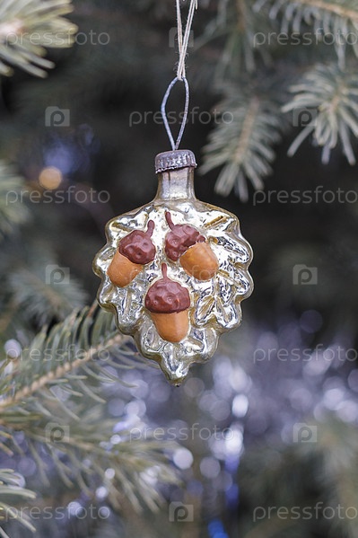 Старая новогодняя елочная игрушка лист с тремя желудями