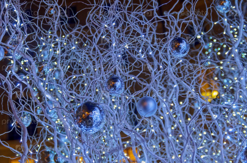Красивые новогодние украшения из стеклянных шаров и электрических гирлянд как фон