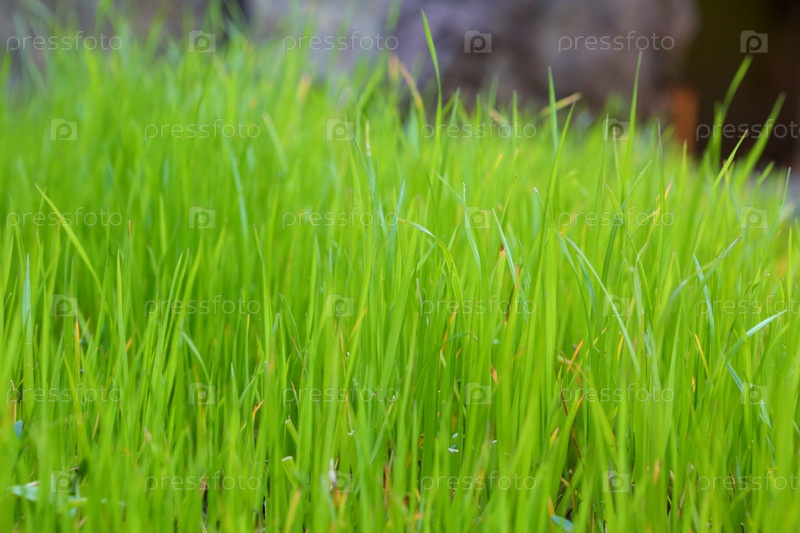 Весенняя зеленая трава в парке. Газон
