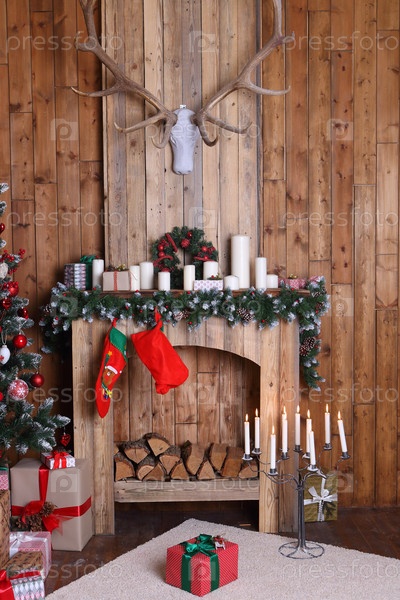 Новогодние декорации с камином