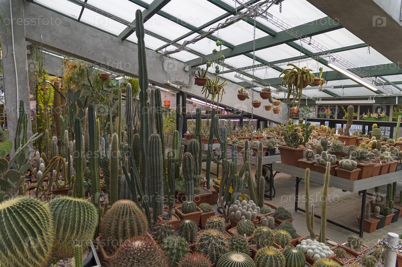 Разнообразные кактусы и суккуленты в оранжерее Аптекарского Огорода (филиал ботанического сада МГУ). Москва