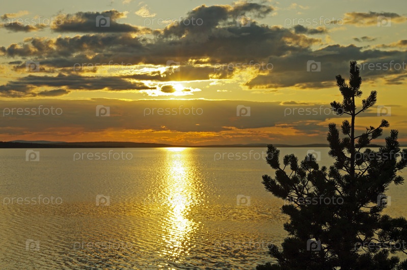 Заход солнца на Канозере. Река Умба, Кольский полуостров, Мурманская область. Август