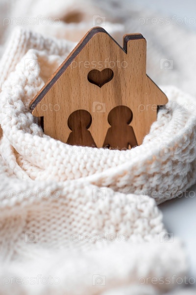Дом, закутанный в шарф. Зима. Утепление дома, защита от холода и непогоды, система отопления помещений. Энергетический кризис в Европе. Праздничное настроение, Рождество, Новый год 2023