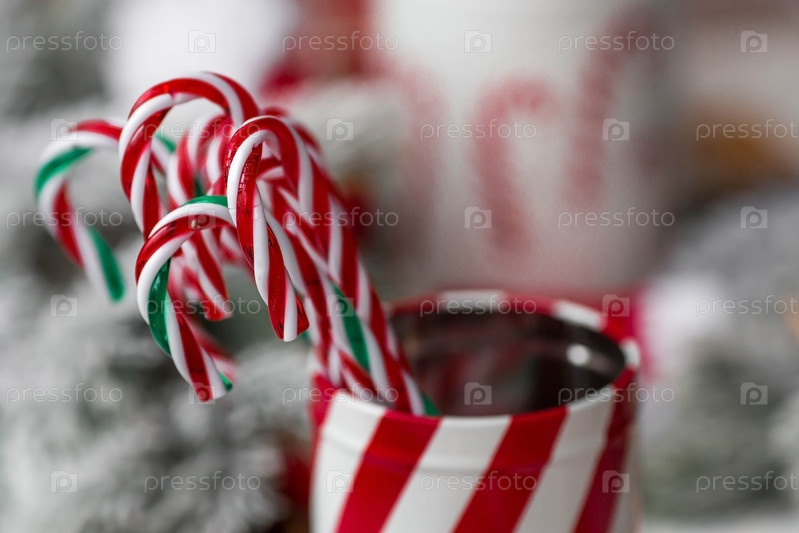 С Новым 2023 годом. Баннер. Полосатые леденцы в банке, место для копирования текста. Леденец трость. Поздравительная открытка на Рождество. Концепция магазина сладостей