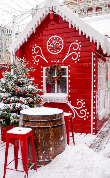 Новогоднее украшение улиц. в классических красно-зеленых тонах. Красивые праздничные пейзажи в городе Москве. Украшенные елки