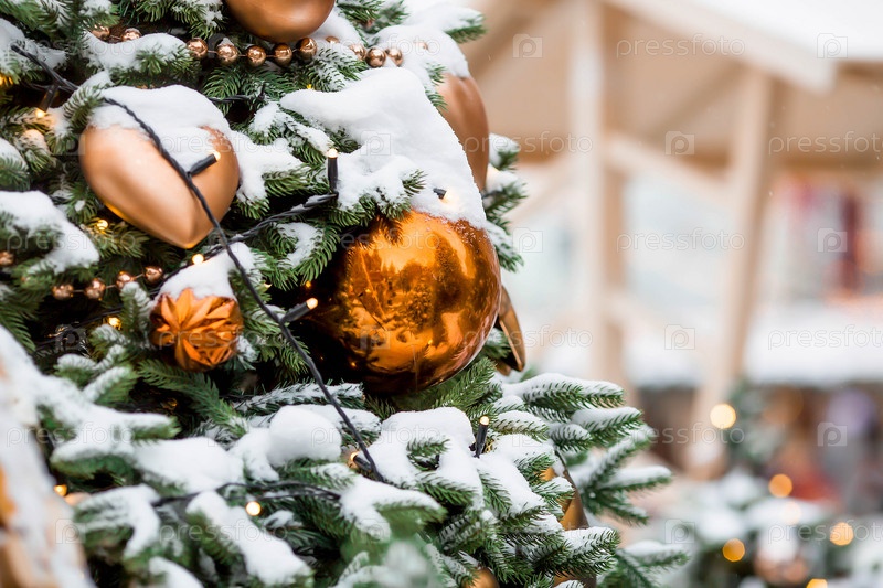 Новогоднее украшение улиц. Красивые праздничные пейзажи в городе. Украшенные елки. Новогодние зимние каникулы 2023
