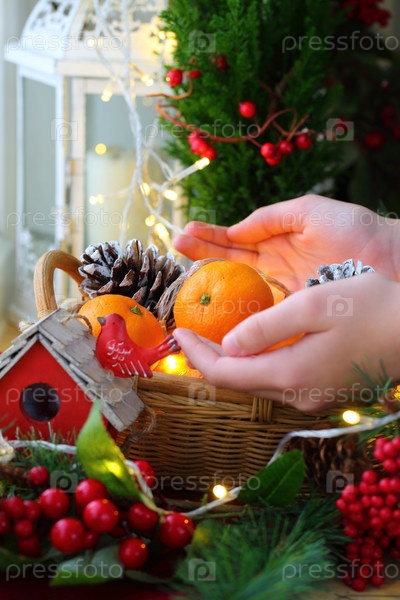 Детские руки держат мандарины