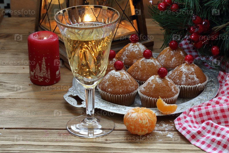 Кексы с шампанским на деревянном фоне