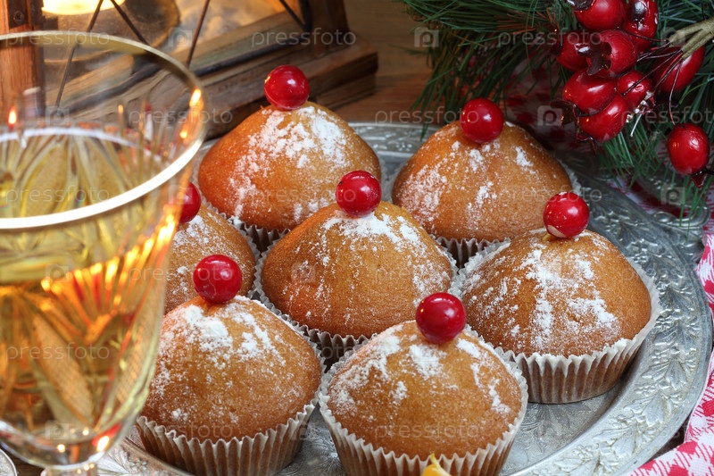 Кексы с шампанским на деревянном фоне