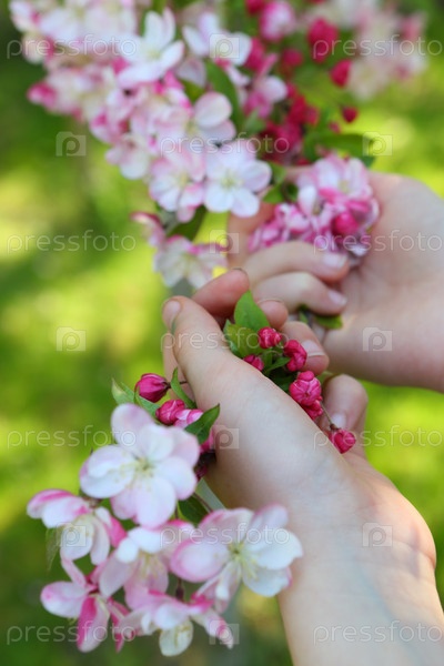 Цветущие ветви райских яблок в парке